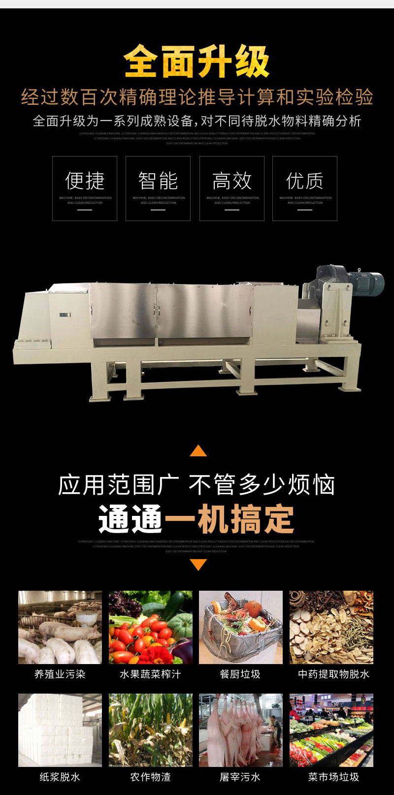 由于待脫水物料種類繁多,不同物料的含水率、分子水比例、粘度、纖維含量、吸水性、韌性、有機(jī)物或無(wú)機(jī)物等等數(shù)據(jù)各有不同,我公司工程師會(huì)根據(jù)每一位客戶提供的待脫水的物料進(jìn)行分析,計(jì)算出適用于該物料的參數(shù),制作出適合的設(shè)備,將物理壓榨作用利用到**,降低擠出物料含水率。